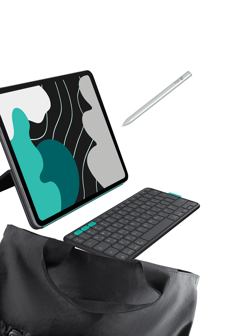 حافظة لوحة مفاتيح مرنة لأجهزة iPad Pro وiPad Air تتيح لك الكتابة والتصفح والبث براحة، بفضل لوحة المفاتيح القابلة للفصل بتقنية Bluetooth®، والمسند القابل للتعديل، والحماية الشاملة من الأمام إلى الخلف.