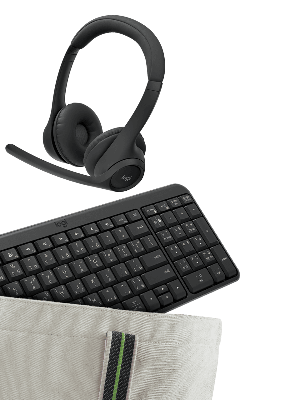 مزيج أنيق من لوحة مفاتيح Pebble Keys 2 وفأرة Pebble 2 M350s. تجمع هذه المجموعة بين الأسلوب والتشغيل الصامت، مثالية لبيئات العمل المتنقلة والهادئة.